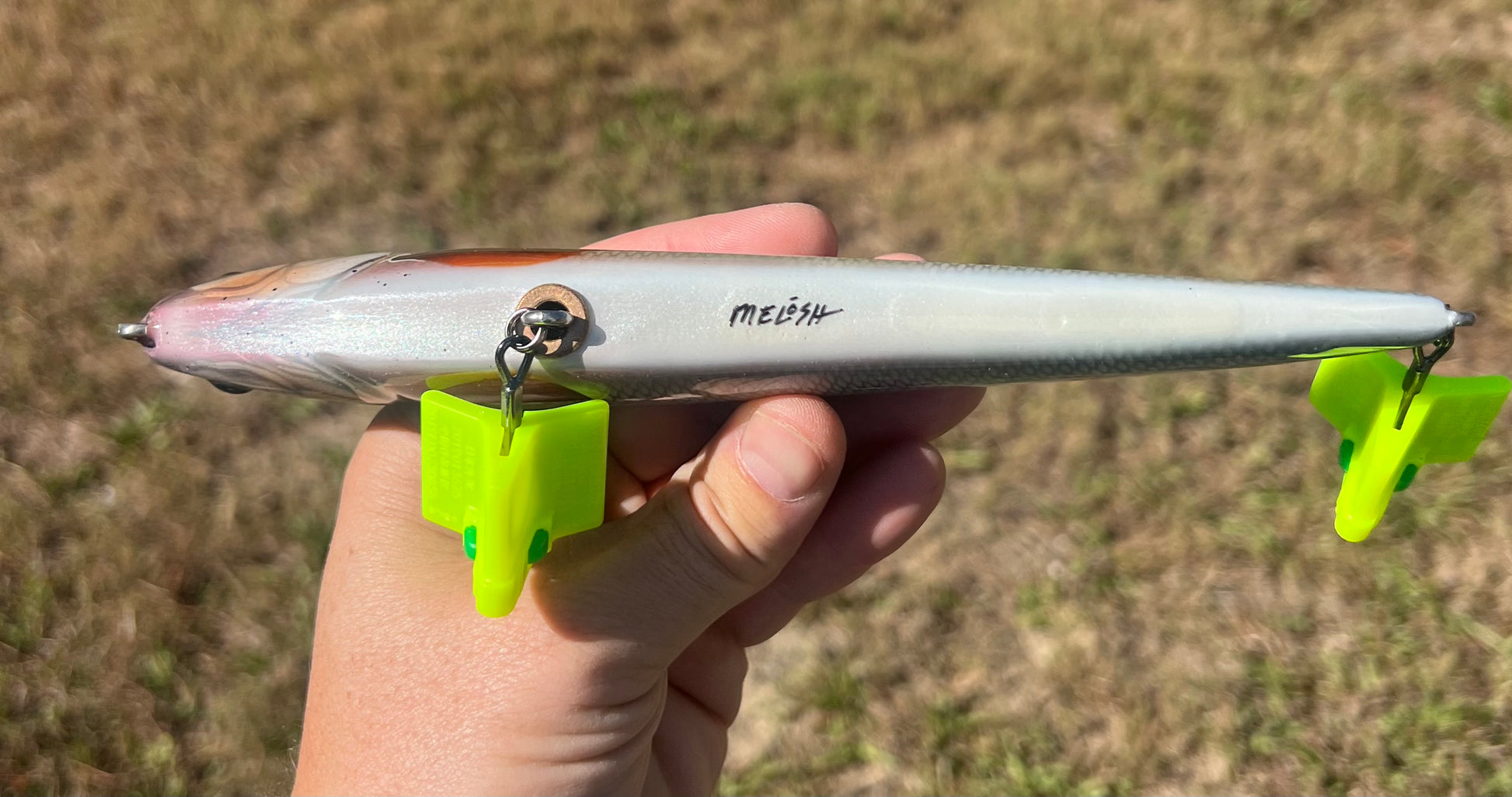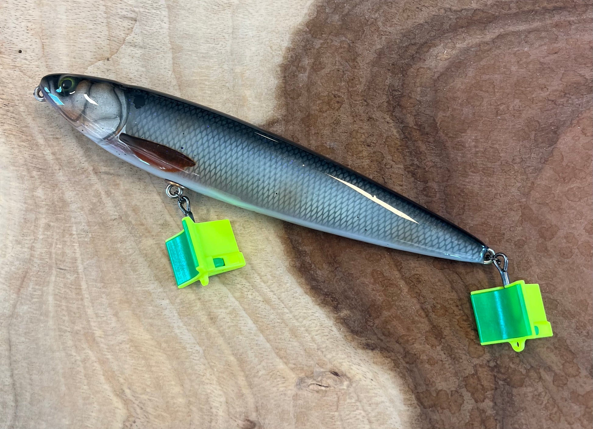 9” red cedar carved walking bait.. 1of1. 3.8oz. This is a Topwater walking style bait, Handpainted, epoxy finished with UV glow glass eyes. Signed.